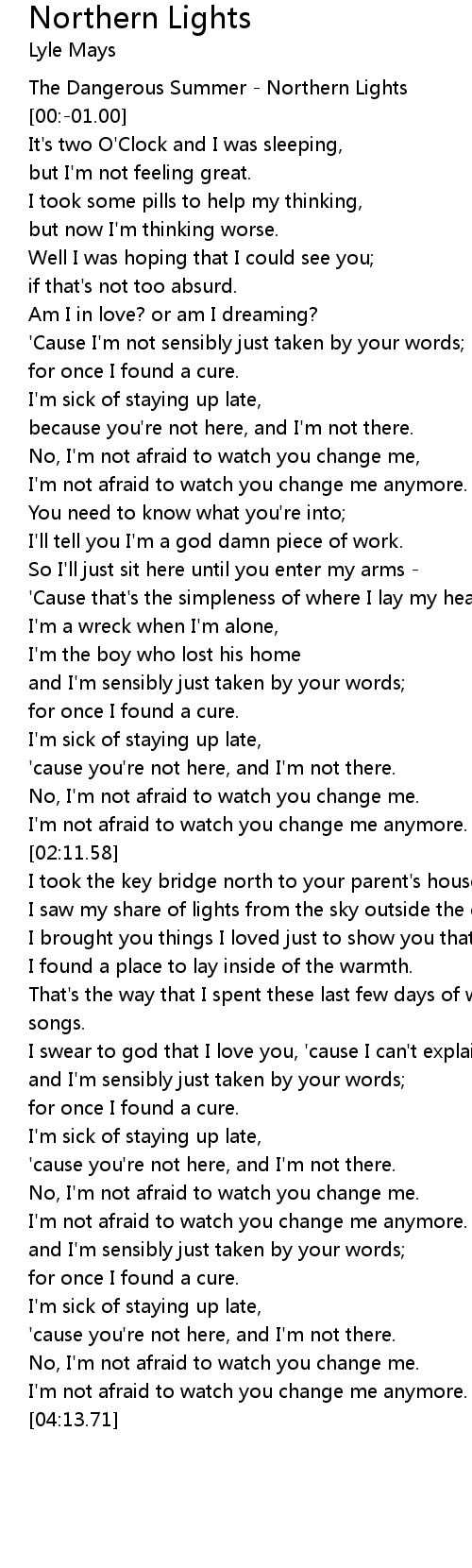 | [00:-04.00] | The Dangerous Summer - Northern Lights |