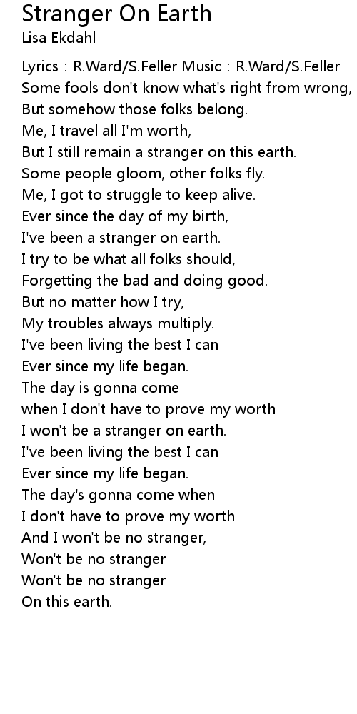 | I won' t be a stranger on earth. | |