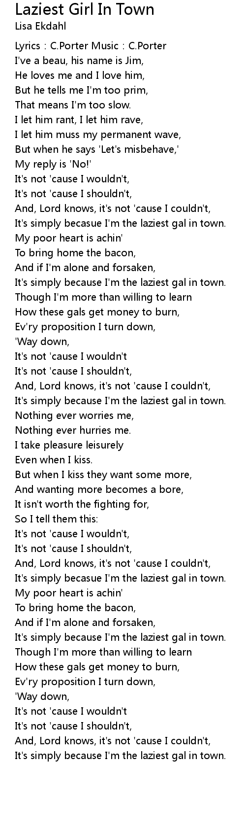 | 歌曲 | Laziest Girl In Town |