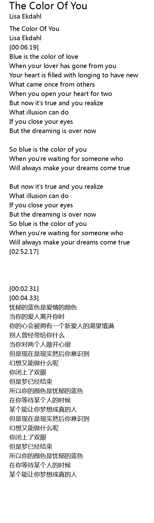 | [02:33.24] | 所以你的颜色是忧郁的蓝色 |