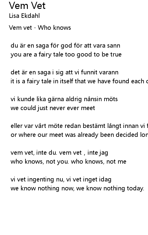 | Vem vet Who knows | |