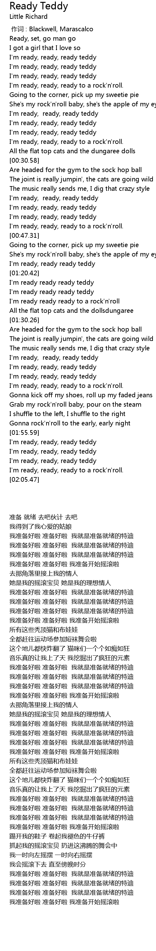 | 歌曲 | Ready Teddy |