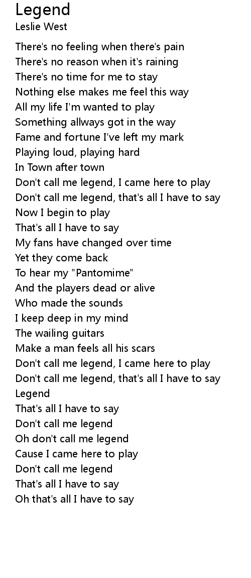 Don't call me legend, that's all I have to say |