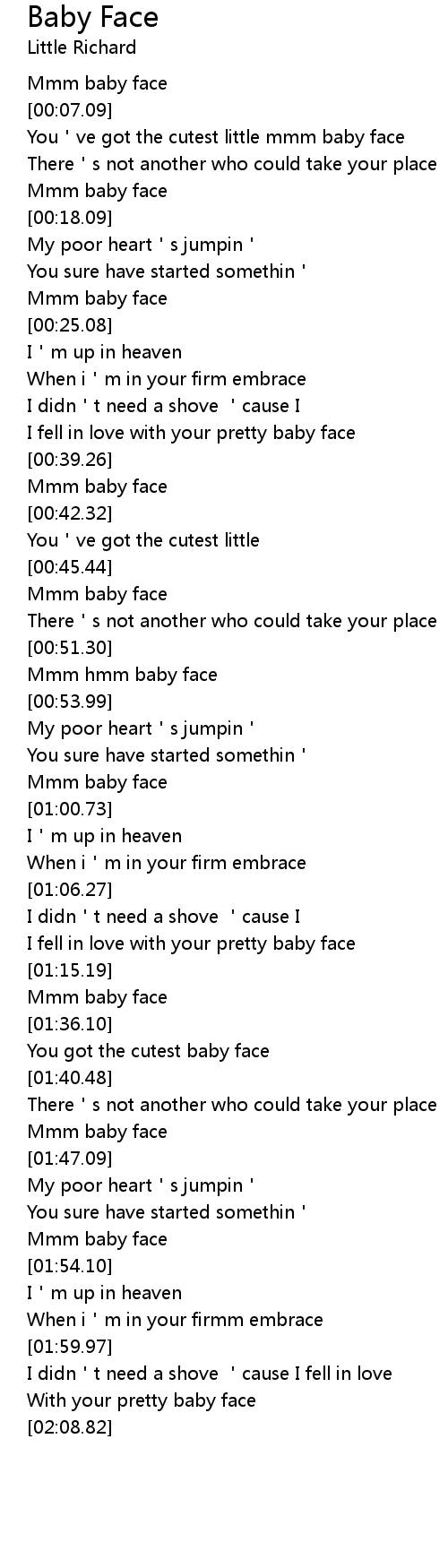 | [00:07.90] | You've got the cutest little mmm baby face |