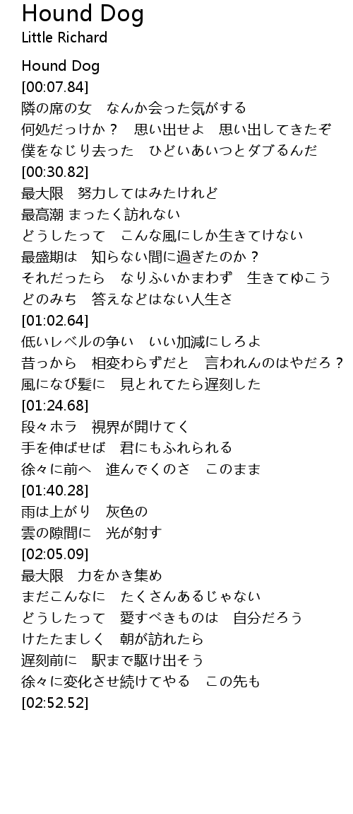 | [00:02.79] | Hound Dog |