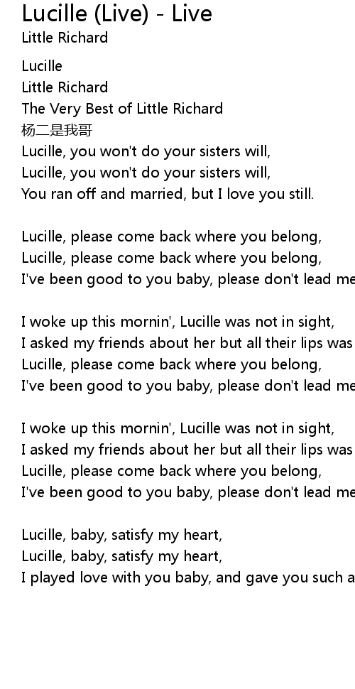| Lucille, baby, satisfy my heart, | |