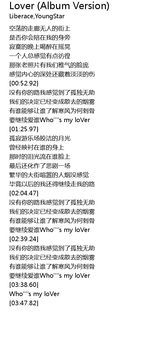| [03:30.06] | yao ji xu ai shui Who'''' s my loVer |