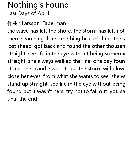 | 歌曲 | Nothing's Found |