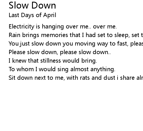 | 歌曲 | Slow Down |