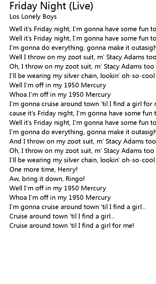 cause it's Friday night, I'm gonna have some fun tonight