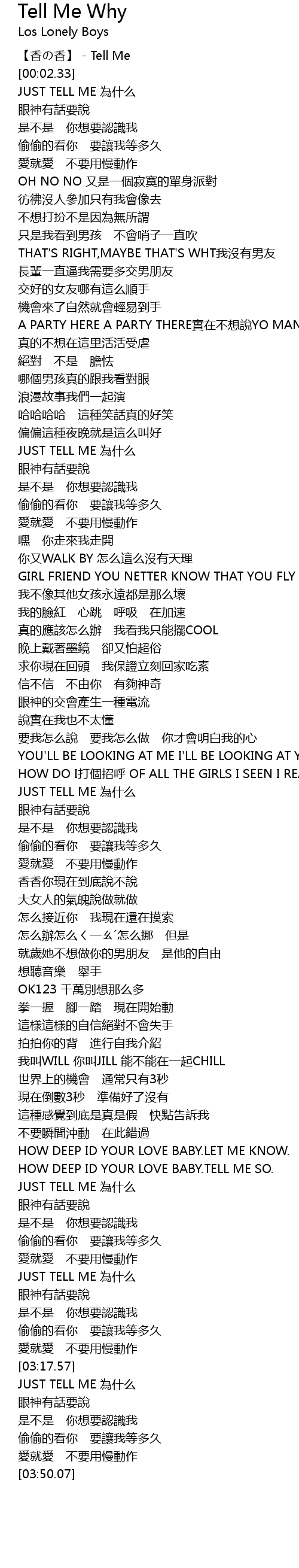 | [00:02.93] | JUST TELL ME wèi shén me |