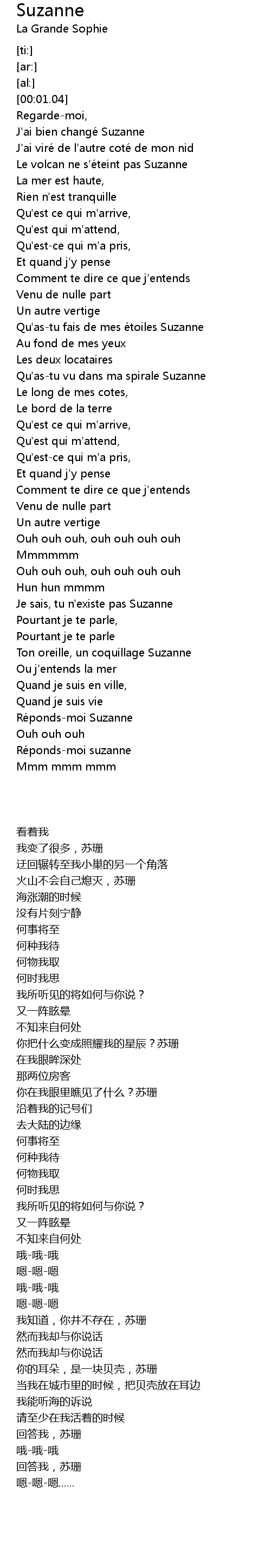 | [01:17.73] | Qu'as-tu vu dans ma spirale Suzanne |