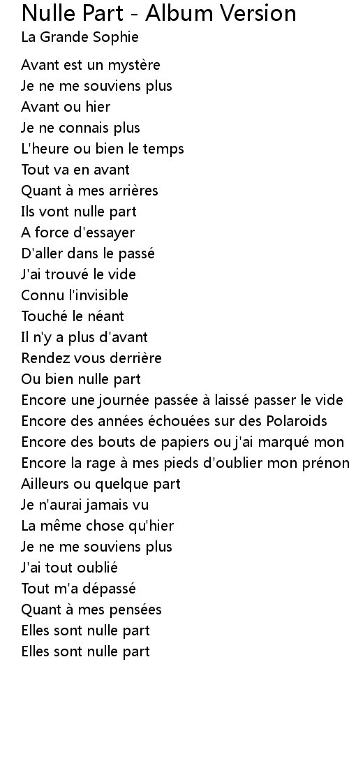 | 歌曲 | Nulle Part - Album Version |