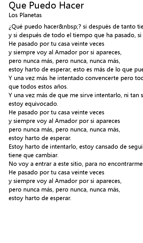 | Que puedo hacer nbsp? si despue s de tanto tiempo no te dejo de querer | |