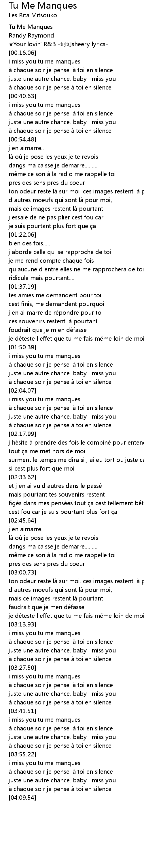 | [03:55.95] | i miss you tu me manques |