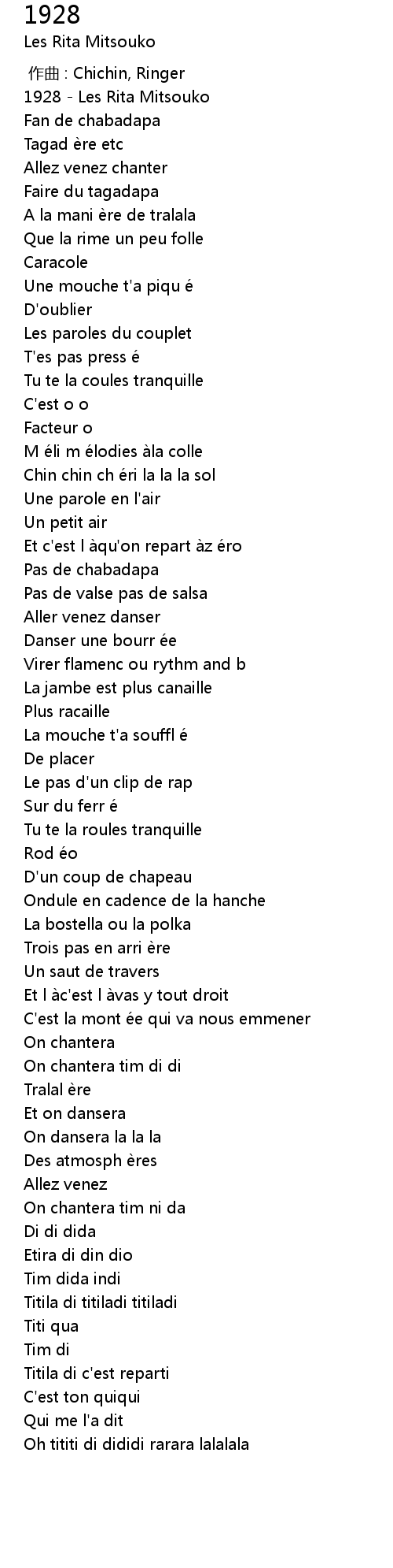 | [00:00.50] | 1928 Les Rita Mitsouko |