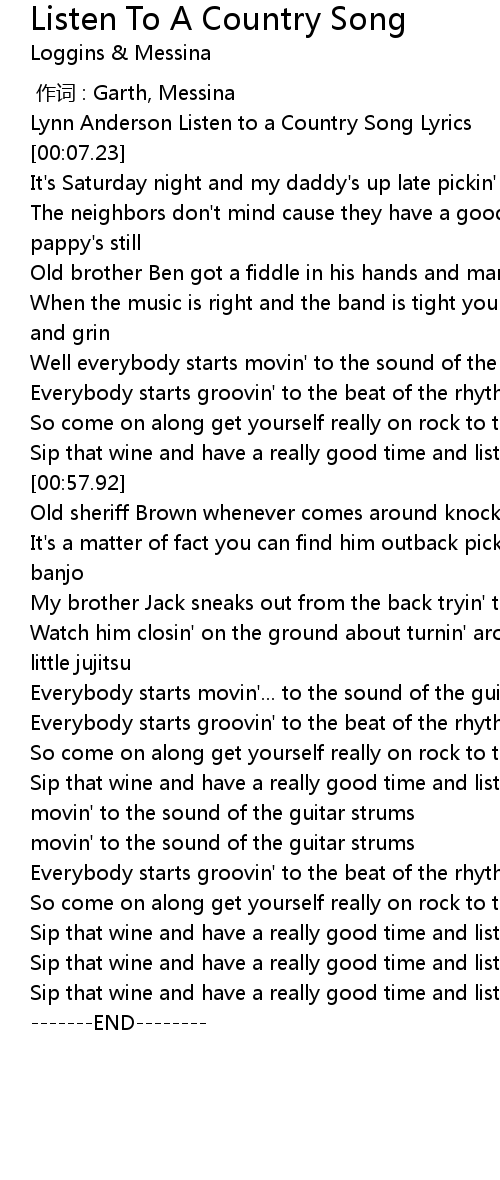 | [00:00.00] | Lynn Anderson Listen to a Country Song Lyrics |