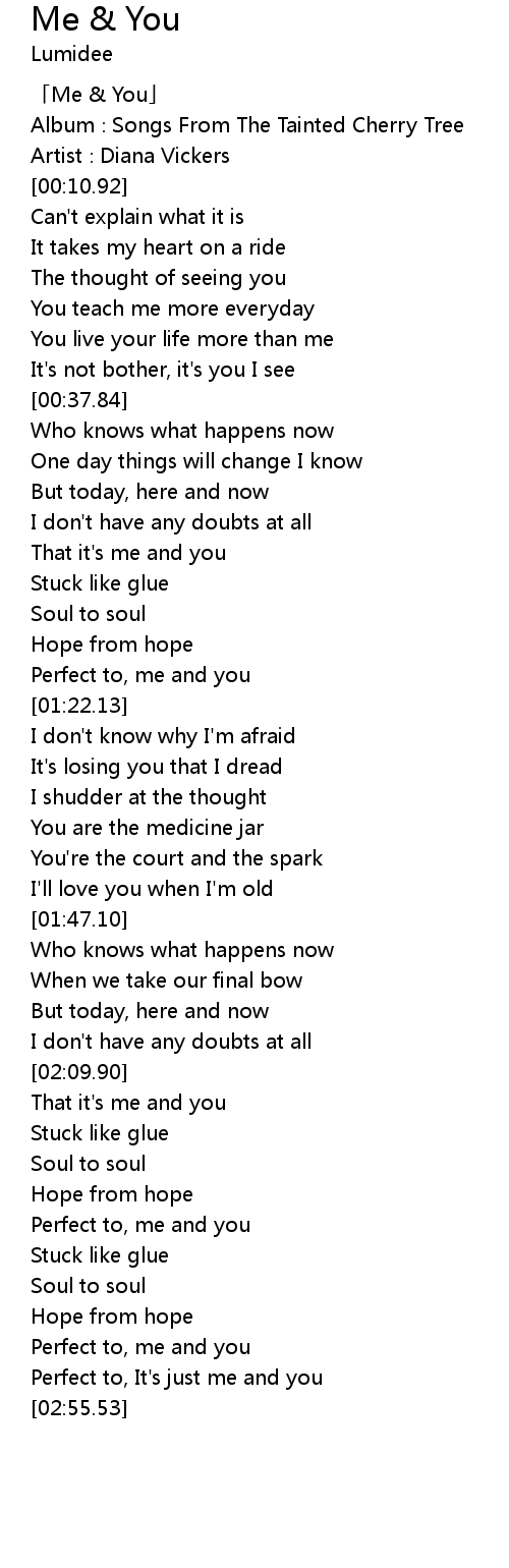 | [02:48.51] | Perfect to, It's just me and you |