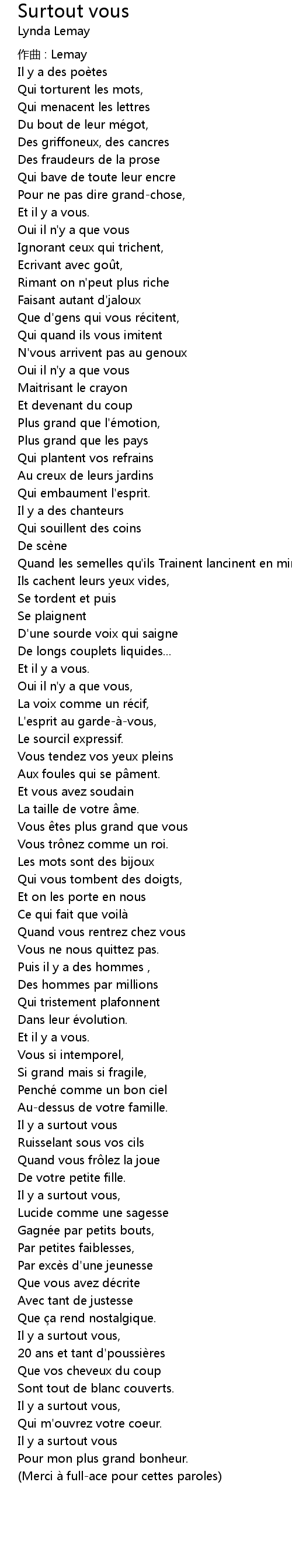 | 歌曲 | Surtout vous |