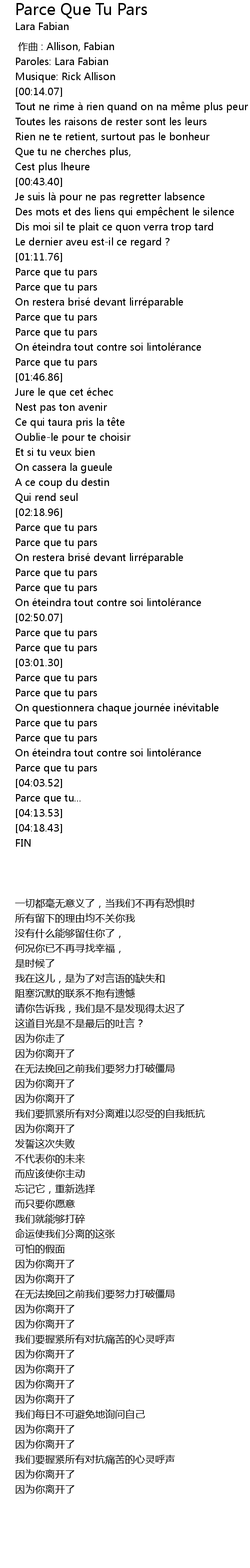 | [01:00.38] | Dis moi sil te plait ce quon verra trop tard |