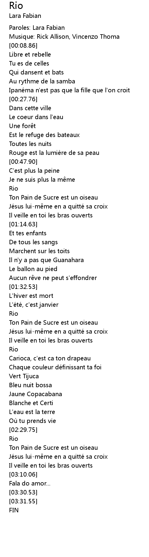 | [02:02.69] | Carioca, c' est ca ton drapeau |