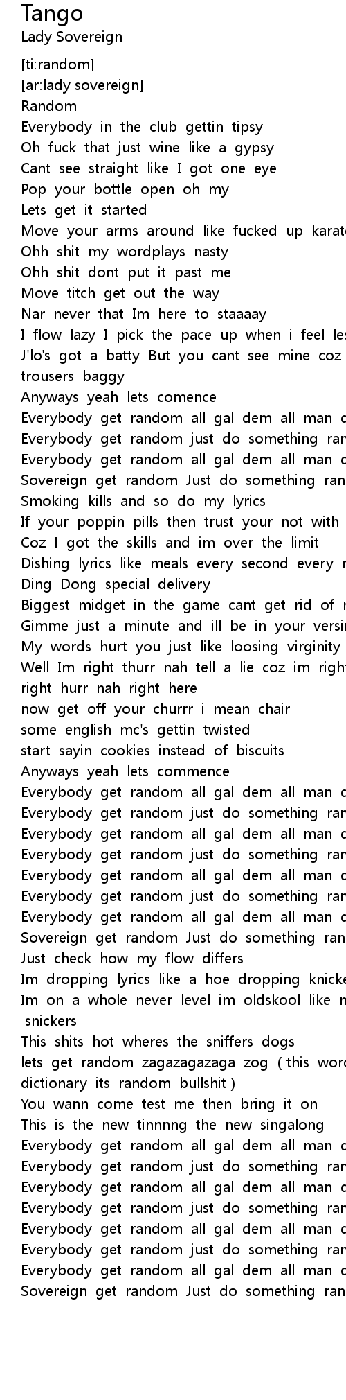 | [02:06.21] | Everybody get random all gal dem all man dem |