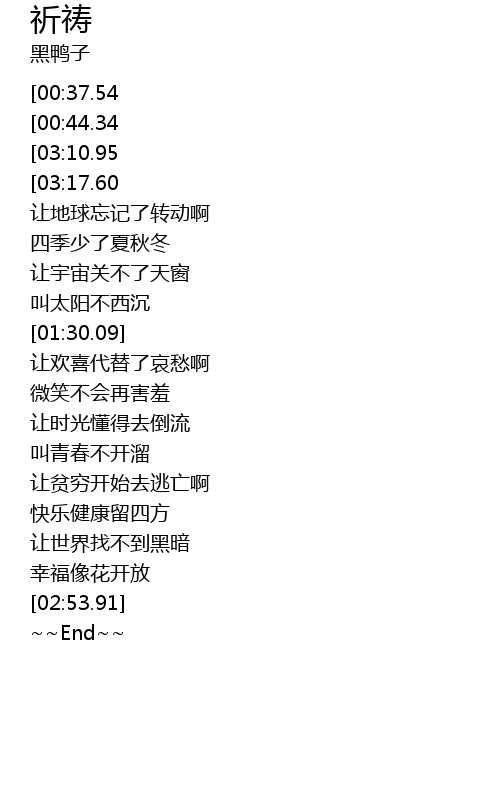 | [03:04.27][00:44.34] | 多少祈祷在心中 |
