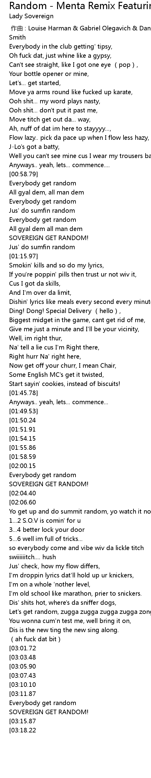 | [03:18.67][03:01.72] | Everybody get random |