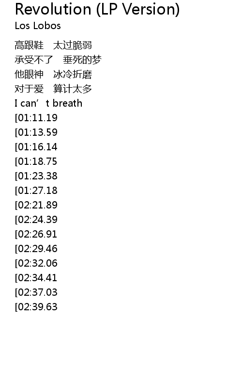 | [03:35.23][02:29.46][01:38.95] | 无法呼吸 |