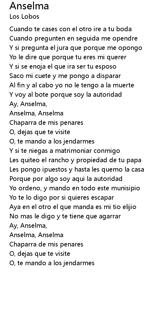 Ay, Anselma, |