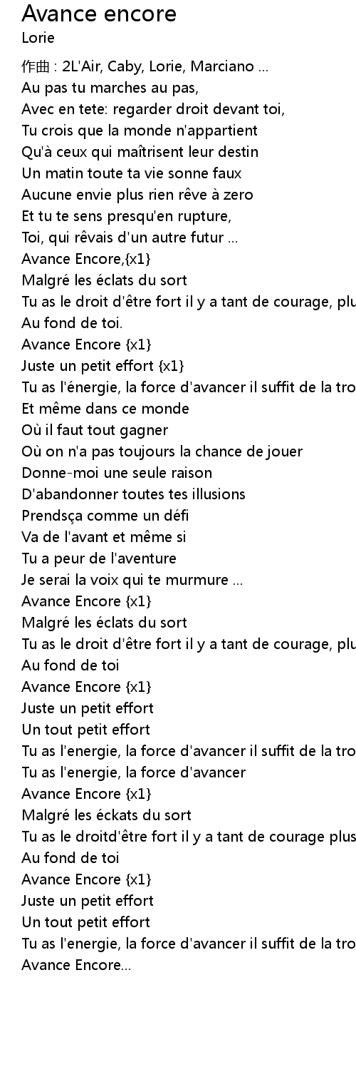 | 作曲 : 2L'Air, Caby, Lorie, Marciano ... | |