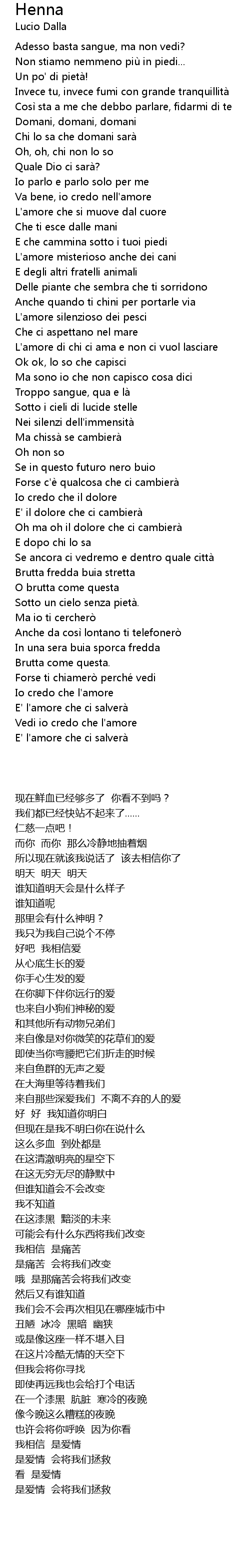 | [03:51.31] | E' l' amore che ci salvera |