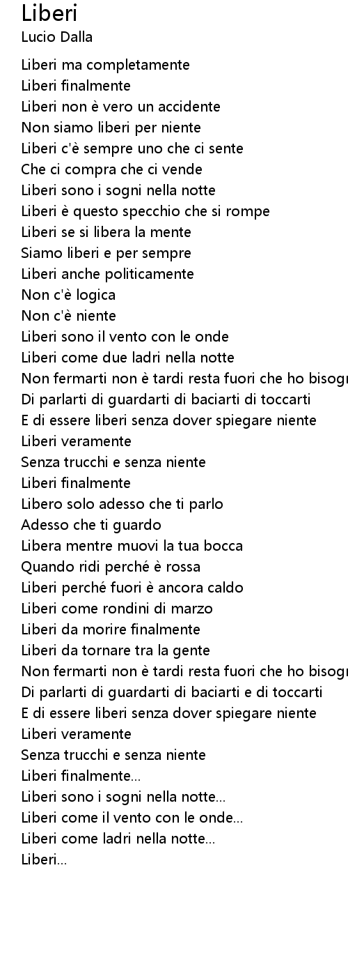 | Non fermarti non e tardi resta fuori che ho bisogno | |