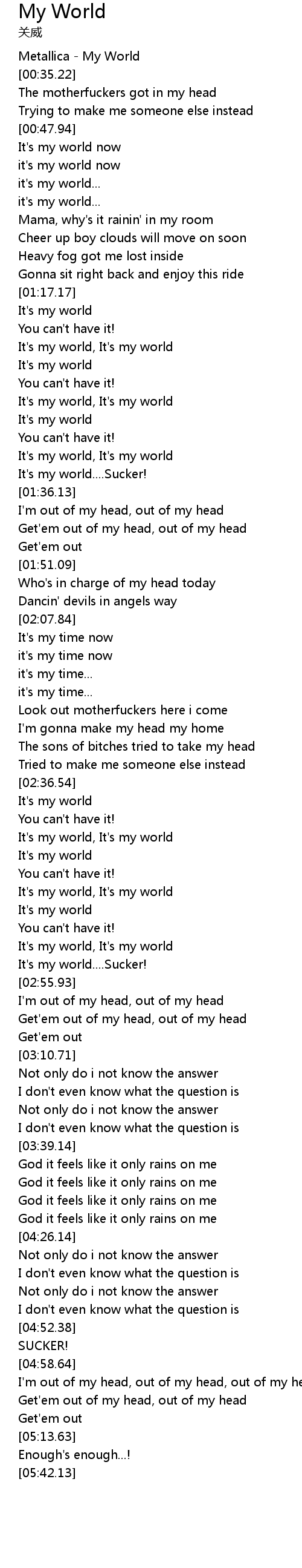 | [00:00.00] | Metallica - My World |