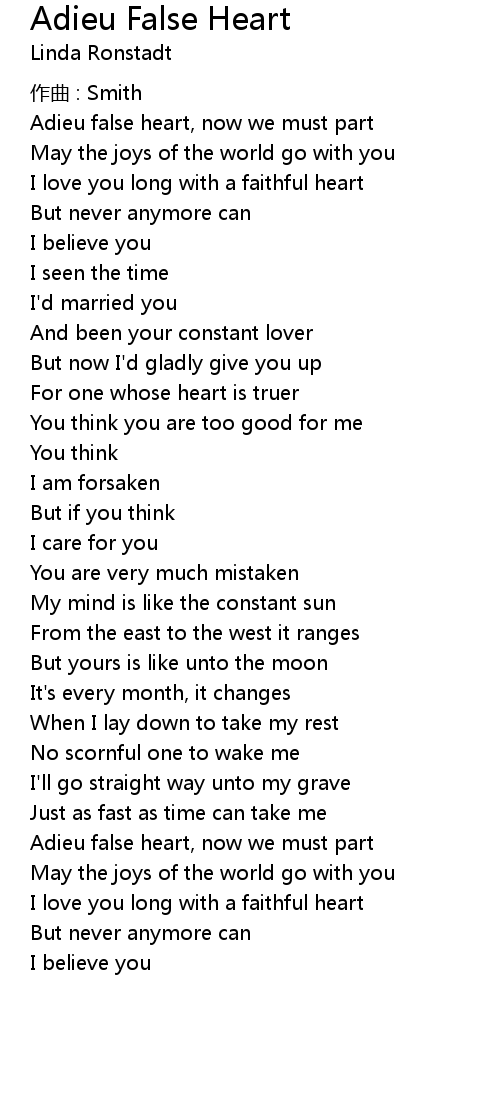 | 歌曲 | Adieu False Heart |