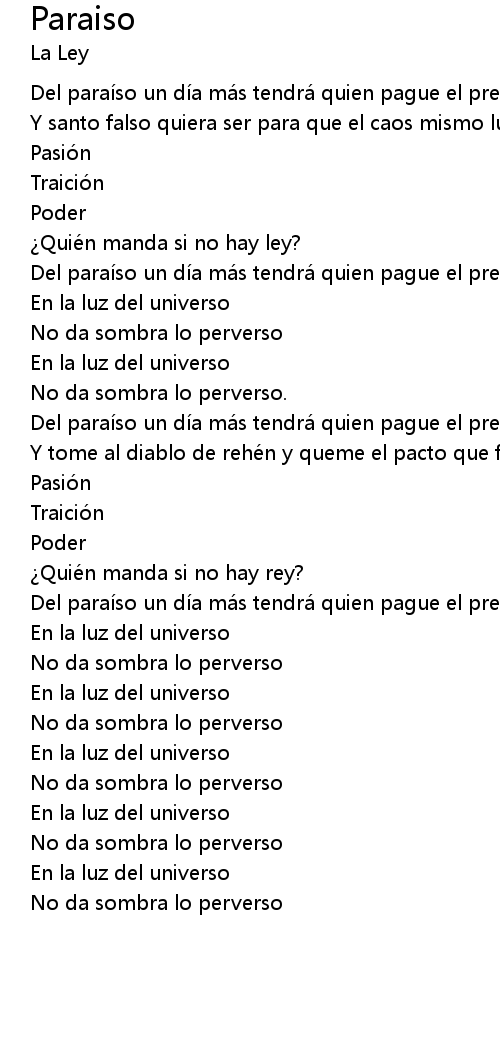 | Del paraí so un dí a má s tendrá quien pague el precio de verdad. | |