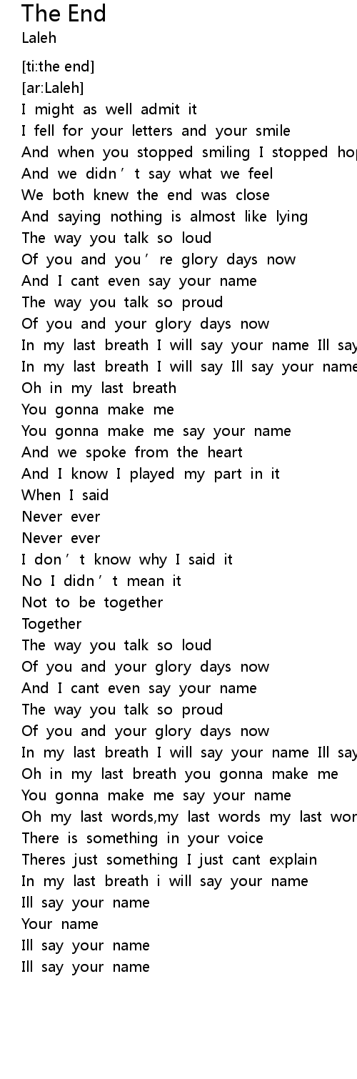 | [03:13.50] | Oh my last words, my last words my last words will be |