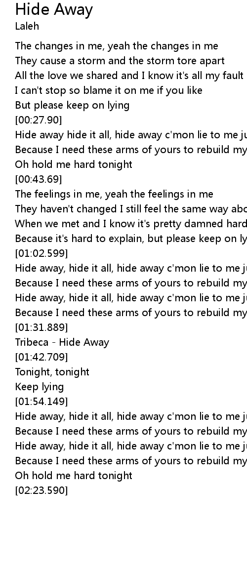 | [01:17.689] | Hide away, hide it all, hide away c' mon lie to me just one more time |