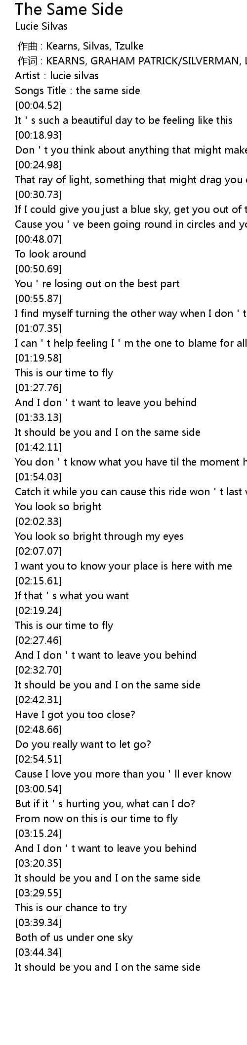 | [00:02.02] | Songs Title:the same side |