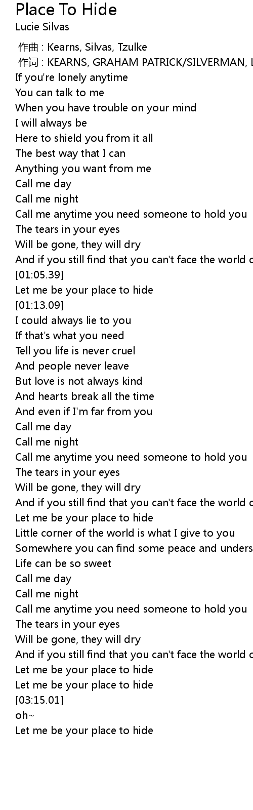 | [00:45.89] | Call me anytime you need someone to hold you |