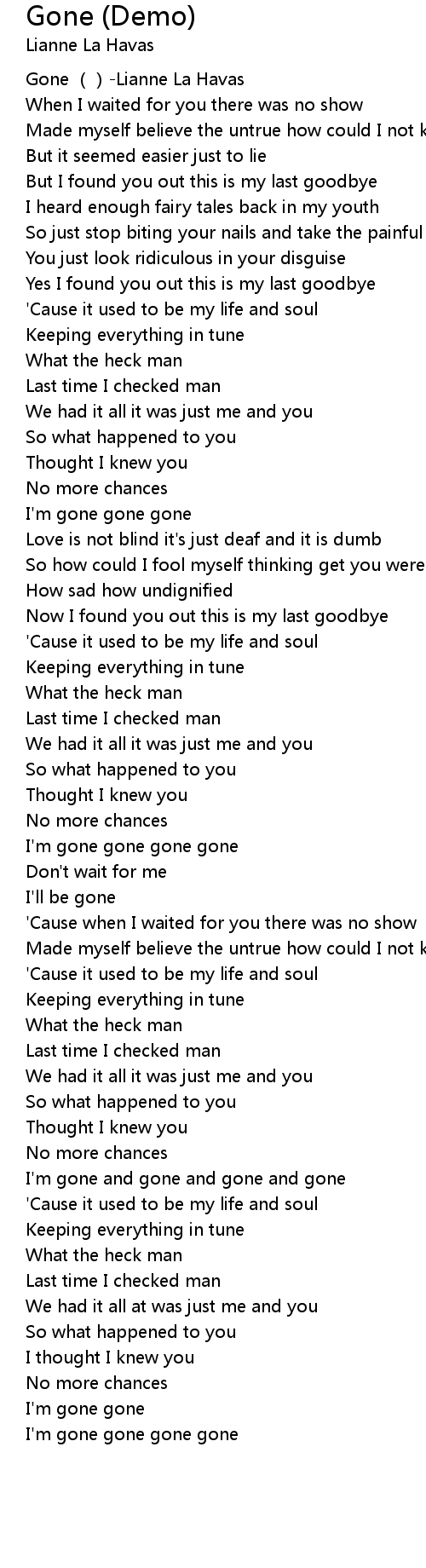 | [00:00.00] | Gone ()-Lianne La Havas |