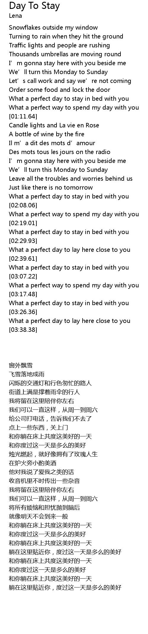 | [03:18.04] | 和你躺在床上共度这美好的一天 |
