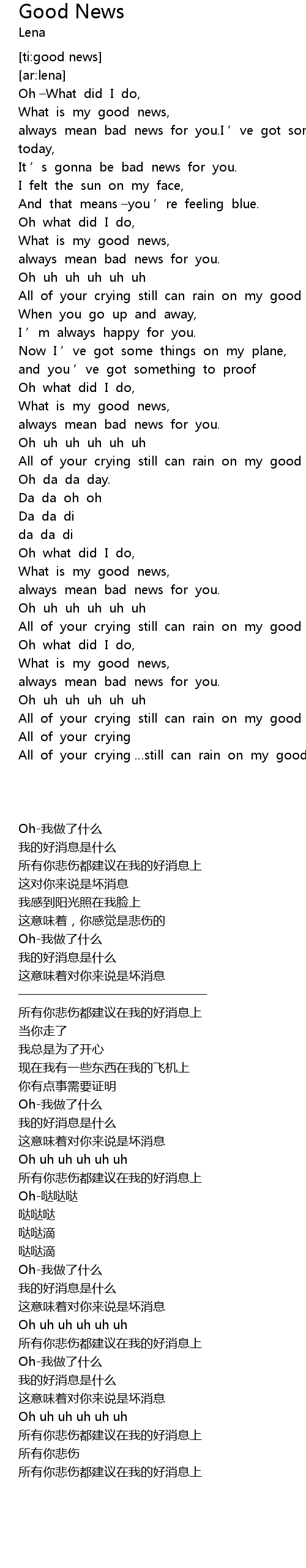 | [00:53.56] | All of your crying still can rain on my good news. |