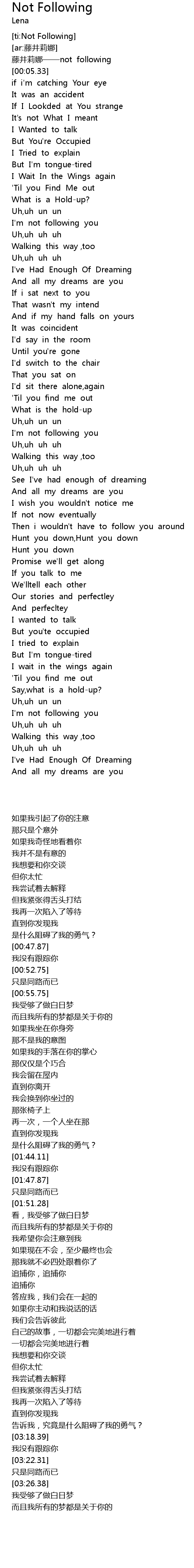 | [00:01.76] | 藤井莉娜——not following |