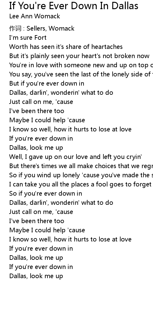 | 歌曲 | If You're Ever Down In Dallas |
