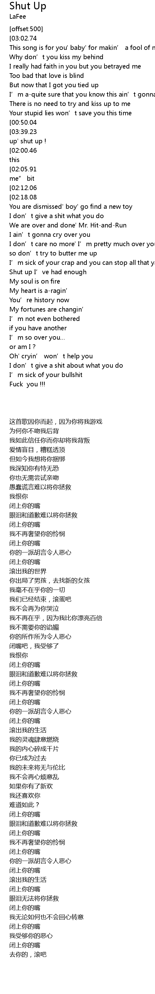 | [03:49.95] | Fuck you !!! |