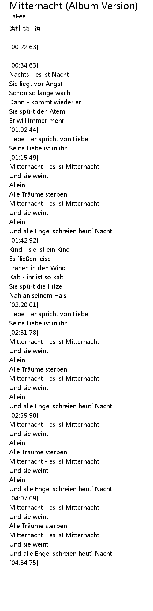 | [03:53.72] | Mitternacht - es ist Mitternacht |