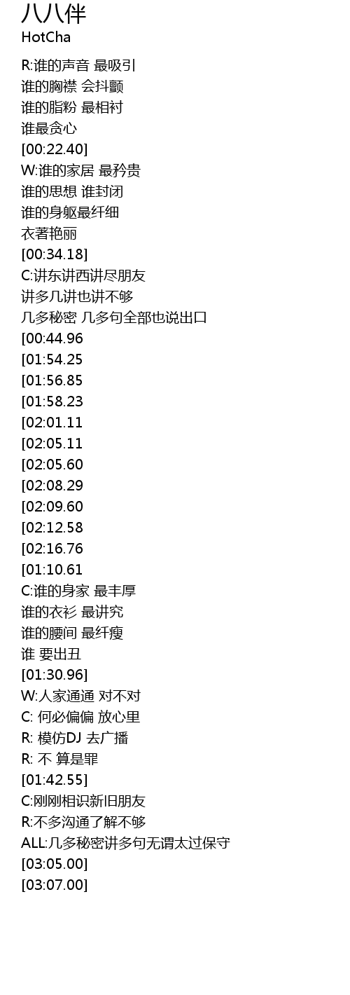 | [02:39.80][01:54.25][00:45.61] | ALL:十万张嘴巴 最喜爱八卦 |