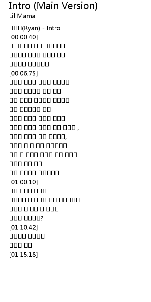 | [00:-01.68] | 라이언(Ryan) - Intro |