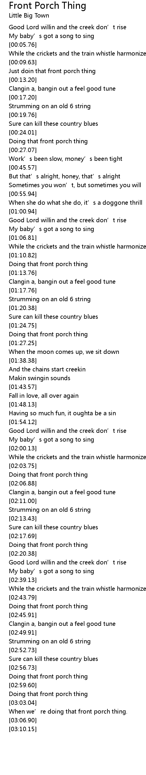 | [02:34.25] | Good Lord willin and the creek don’t rise |